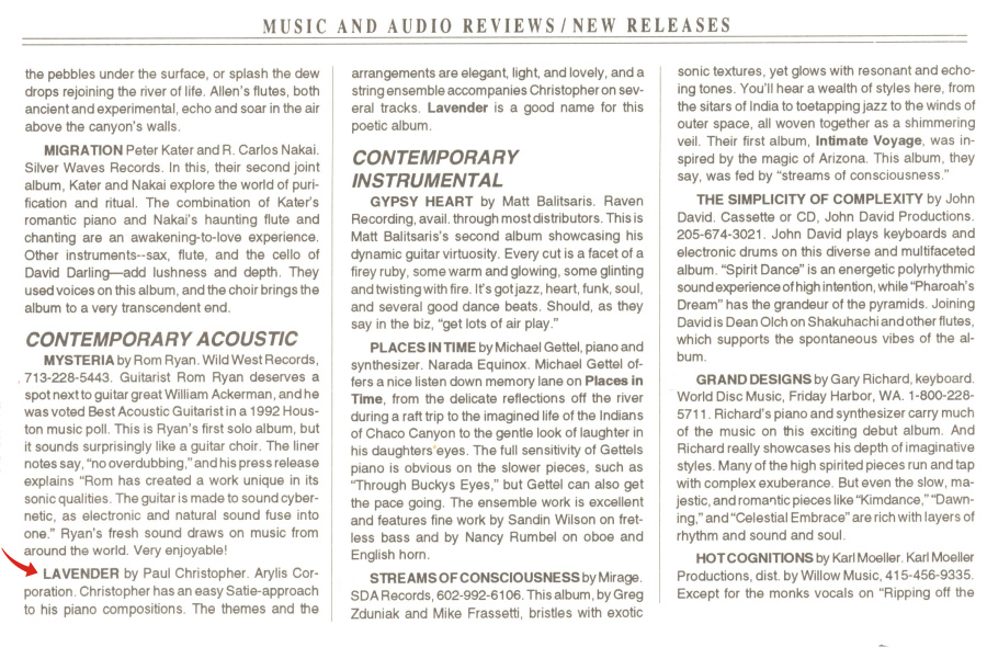 (Lavender is a CD created by Machiko Yamane and Paul Christopher Musgrave.)